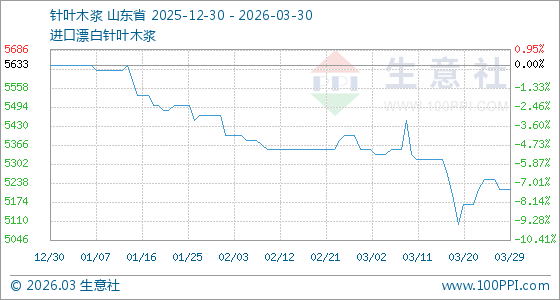 3月30日生意社针叶木浆基准价为5216.67元/吨