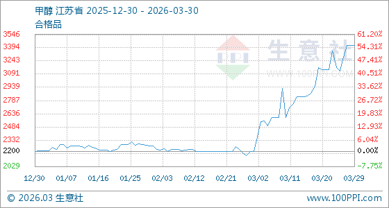 3月30日生意社甲醇基准价为3420.00元/吨