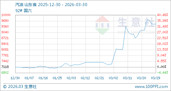 3月30日,生意社汽油基准价为9509.14元/吨,与本月初(7286.60元/吨)相比,上涨了30.50%。