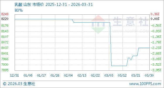 3月31日生意社乳酸基准价为8037.50元/吨