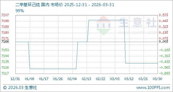 3月31日生意社二甲基环己烷基准价为7133.33元/吨