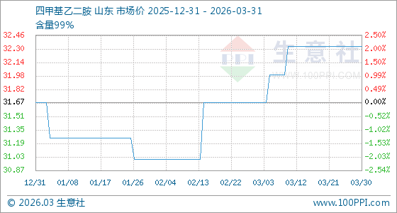 3月31日生意社四甲基乙二胺基准价为32.33元/千克