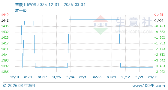 3月31日,生意社焦炭基准价为1391.25元/吨,与本月初(1443.75元/吨)相比,下降了3.64%。