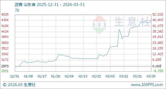 3月31日生意社沥青基准价为4393.33元/吨