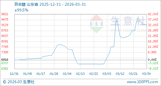 3月31日生意社异辛醇基准价为9133.33元/吨
