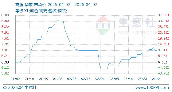 4月2日,生意社鸡蛋基准价为7.00元/公斤,与本月初持平。