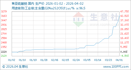 4月2日生意社焦亚硫酸钠基准价为3183.33元/吨