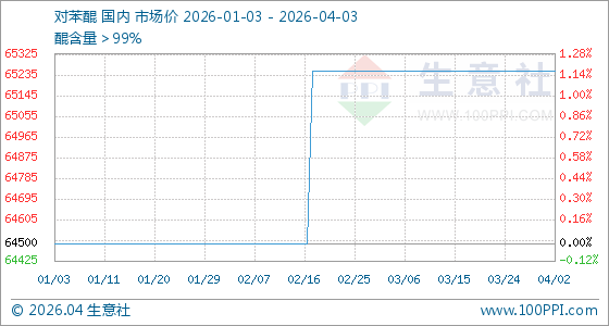 4月3日,生意社对苯醌基准价为65250.00元/吨,与本月初持平。