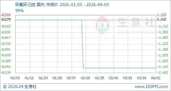 4月3日,生意社环氧环己烷基准价为41233.33元/吨,与本月初持平。