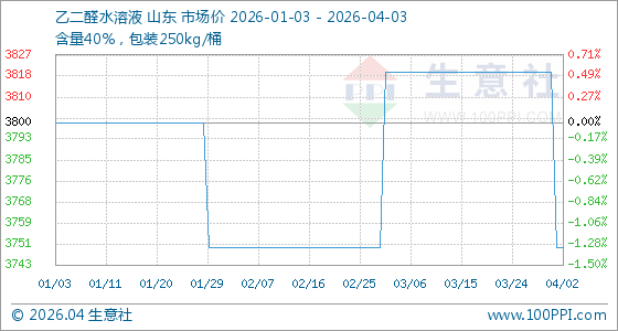 4月3日生意社乙二醛水溶液基准价为3750.00元/吨