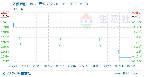 4月3日,生意社乙酰丙酮基准价为15375.00元/吨,与本月初持平。