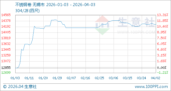 4月3日生意社不锈钢卷基准价为14262.50元/吨