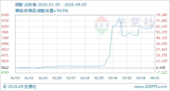 4月3日生意社顺酐基准价为8600.00元/吨