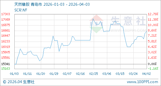 4月3日生意社天然橡胶基准价为16650.00元/吨