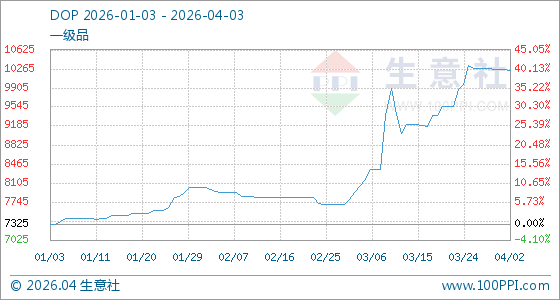4月3日生意社DOP基准价为10242.50元/吨