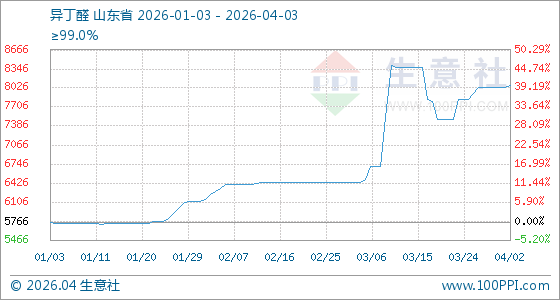 4月3日生意社异丁醛基准价为8066.67元/吨