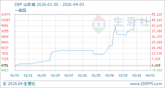 4月3日,生意社DBP基准价为9968.33元/吨,与本月初持平。