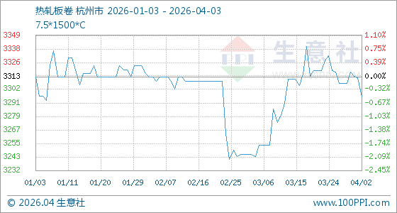 4月3日生意社热轧板卷基准价为3296.00元/吨