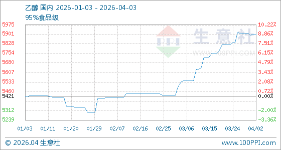 4月3日生意社乙醇基准价为5905.00元/吨