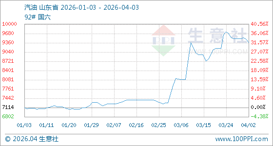 4月3日生意社汽油基准价为9376.43元/吨