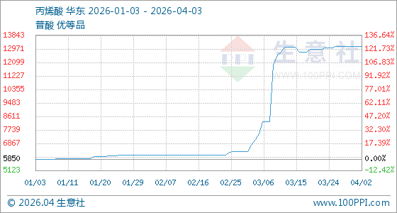 4月3日生意社丙烯酸基准价为13116.67元/吨