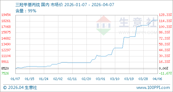 4月7日,生意社三羟甲基丙烷基准价为18460.00元/吨,与本月初(17466.67元/吨)相比,上涨了5.69%。