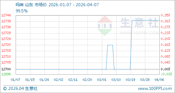 4月7日,生意社吗啉基准价为12740.00元/吨,与本月初持平。