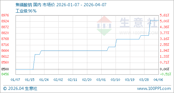4月7日生意社焦磷酸钠基准价为8933.33元/吨