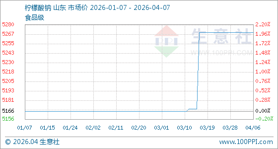 4月7日,生意社柠檬酸钠基准价为5270.00元/吨,与本月初持平。