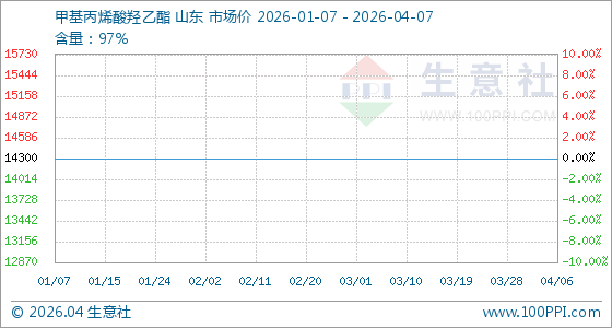 4月7日,生意社甲基丙烯酸羟乙酯基准价为14300.00元/吨,与本月初持平。