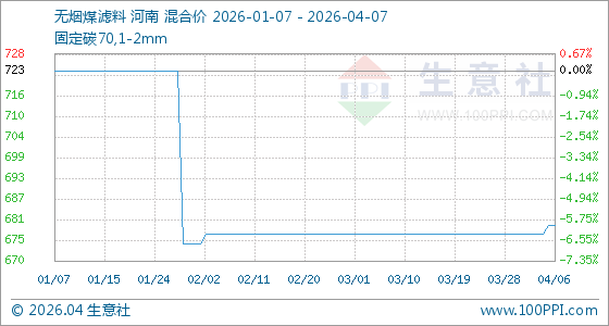 4月7日生意社无烟煤滤料基准价为680.00元/吨