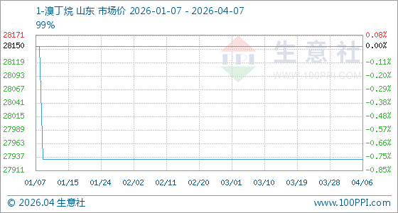 4月7日,生意社1-溴丁烷基准价为27933.33元/吨,与本月初持平。