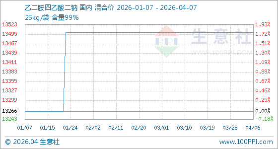 4月7日生意社乙二胺四乙酸二钠基准价为13500.00元/吨