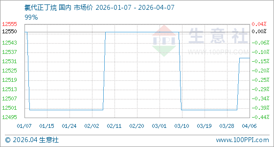 4月7日生意社氯代正丁烷基准价为12533.33元/吨
