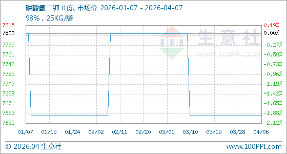 4月7日,生意社磷酸氢二钾基准价为7650.00元/吨,与本月初持平。