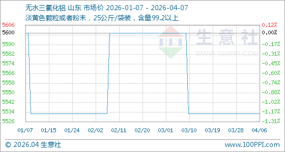 4月7日生意社无水三氯化铝基准价为5533.33元/吨