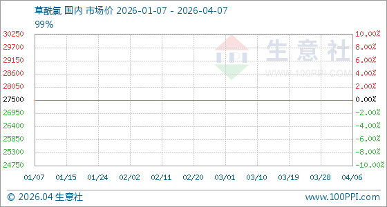 4月7日,生意社草酰氯基准价为27500.00元/吨,与本月初持平。