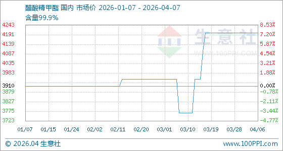 4月7日生意社醋酸精甲酯基准价为4200.00元/吨