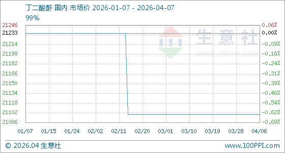 4月7日,生意社丁二酸酐基准价为21100.00元/吨,与本月初持平。
