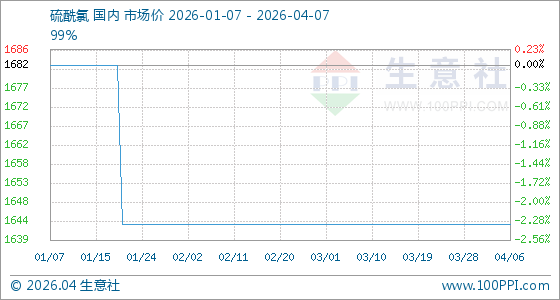 4月7日生意社硫酰氯基准价为1643.33元/吨