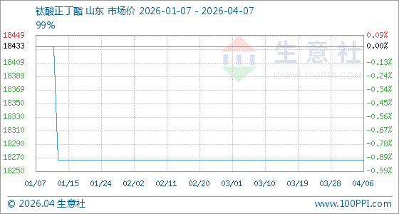 4月7日,生意社钛酸正丁酯基准价为18266.67元/吨,与本月初持平。