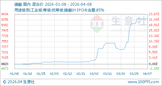 4月8日生意社磷酸基准价为8287.50元/吨