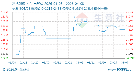 4月8日生意社不锈钢板基准价为12916.67元/吨