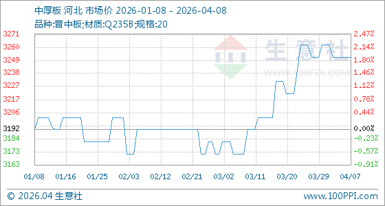 4月8日,生意社中厚板基准价为3252.00元/吨,与本月初(3262.00元/吨)相比,下降了0.31%。