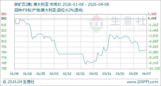 4月8日生意社铁矿石(澳)基准价为788.89元/吨