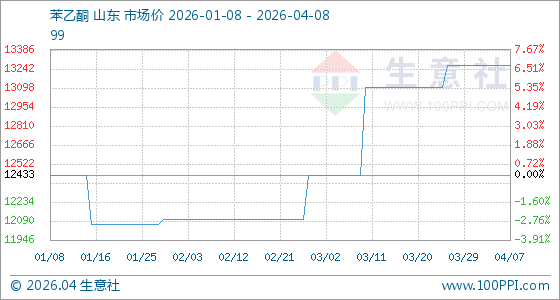 4月8日生意社苯乙酮基准价为13266.67元/吨