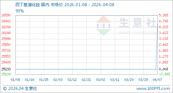 4月8日生意社四丁基溴化铵基准价为26466.67元/吨