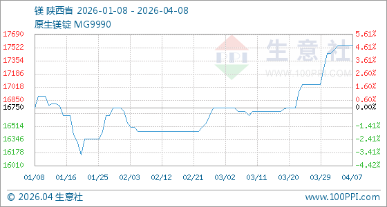 4月8日,生意社镁基准价为17550.00元/吨,与本月初(17450.00元/吨)相比,上涨了0.57%。