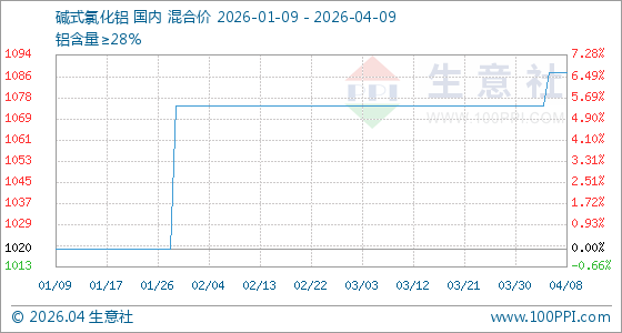 4月9日生意社碱式氯化铝基准价为1087.50元/吨