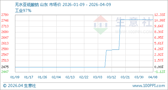 4月9日生意社无水亚硫酸钠基准价为2752.50元/吨